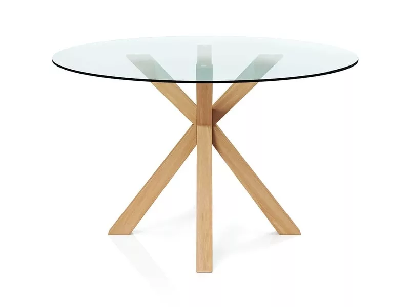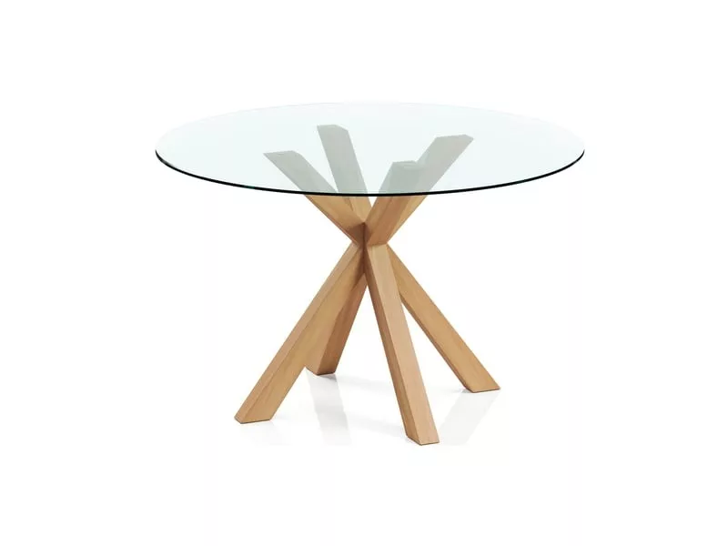 Table à manger ronde - 120cm - verre - tauwa naturel