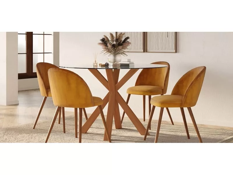 .Avec un diamètre de 120 cm, cette table à manger offre le parfait équilibre entre fonctionnalité et style. Son plateau rond en verre transparent soigneusement poli offre une surface lisse et brillante qui reflète la lumière ambiante, ajoutant de la luminosité à l’environnement et donnant l’impression que la table est plus grande qu’elle ne l’est réellement. Les pieds croisés soutenant la table ronde ont une couleur naturelle qui s’harmonise avec n’importe quel style ; la croisée des pieds apporte non seulement stabilité et solidité à la table, mais ajoute également une touche d’originalité à l’ensemble. Cette table en verre est conçue pour accueillir confortablement 6 convives, encourageant l’interaction et la conversation entre amis et membres de la famille. Dimensions : 120 cm x 120 cm x 76 cm (L x l x H)