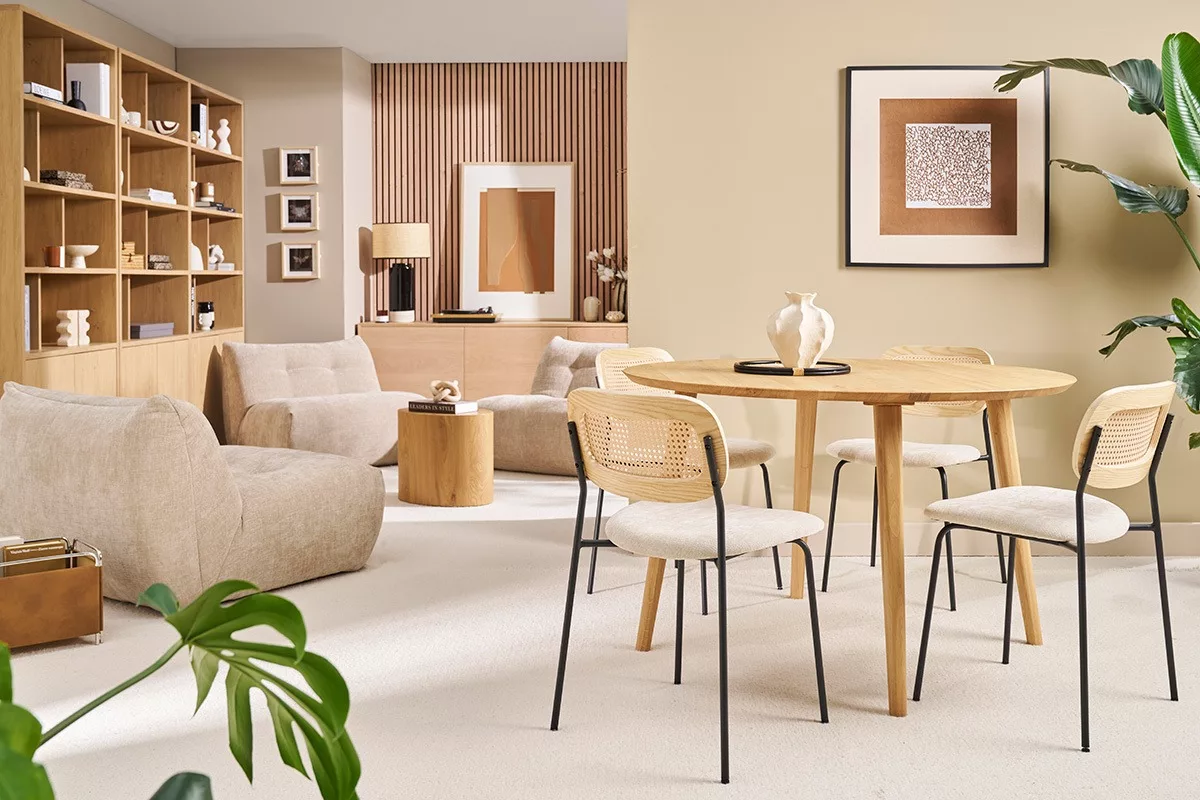 La table à manger OKSANA en bois clair est une invitation à renouer avec l’essence même du foyer. Offrez-vous le cadre idéal pour des moments inoubliables, entre goût prononcé pour le design et amour pour le naturel.