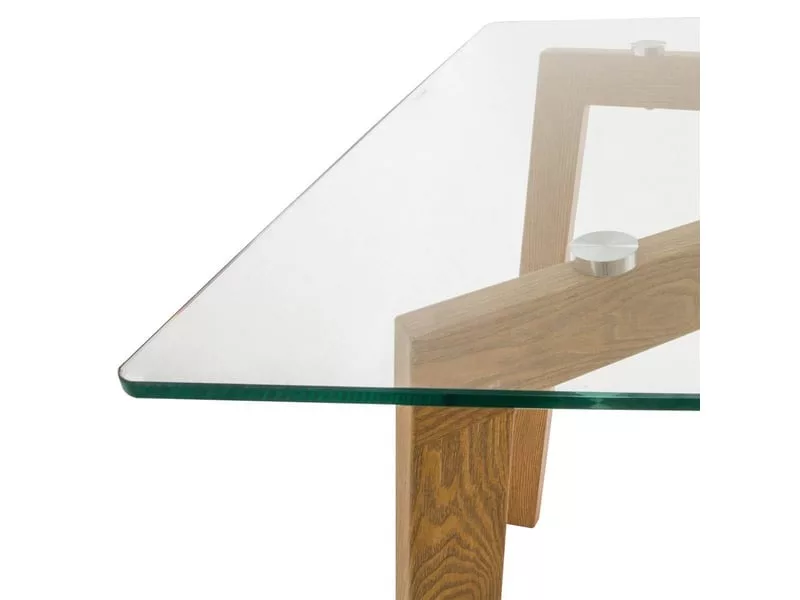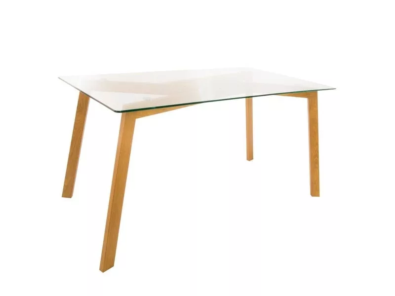 La table à manger « Taho » est un meuble contemporain aux accents scandinaves. Son grand plateau en verre trempé repose sur de solides pieds en acier habillé façon chêne. Ce design tout en finesse apportera légèreté et modernité à votre décoration intérieure.
