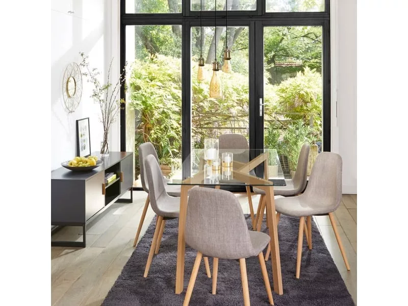 Le plateau entièrement en verre trempé est parfait pour soigner la luminosité de votre salle à manger. Pour le protéger, pensez à mettre des dessous-de-plat sous vos préparations chaudes.