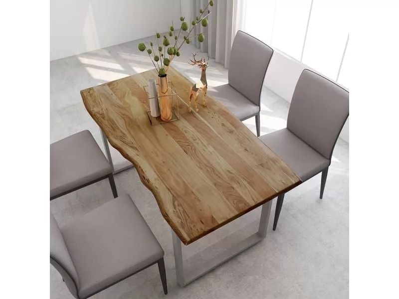 Cette table de salle à manger au style industriel et rustique sera un supplément distinctif à votre cuisine ou salle à manger. Cette table de salle à manger est en bois d’acacia massif, un bois dur tropical réputé pour sa robustesse et ses grains riches. La forme vive et les bords du dessus de table sont délibérément transformés, pour que le caractère original et l’impression naturelle de l’arbre soient apportés à votre décoration intérieure ! Chaque étape du processus est réalisée avec le plus grand soin, que ce soit le polissage, la peinture ou le laquage. Les pieds en acier complètent l’aspect industriel et contribuent à la construction robuste. La table de salle à manger est facile à assembler. Remarque importante : Les couleurs et les bords peuvent varier d’une pièce à l’autre, ce qui rend chaque table de salle à manger unique ; la livraison est aléatoire.