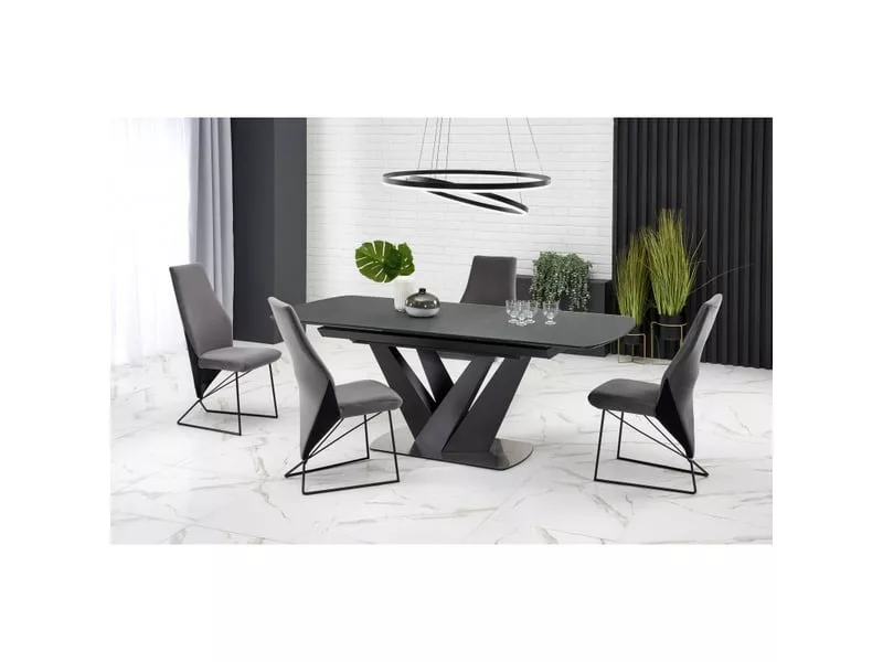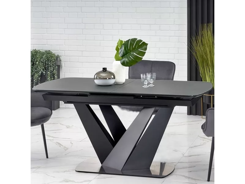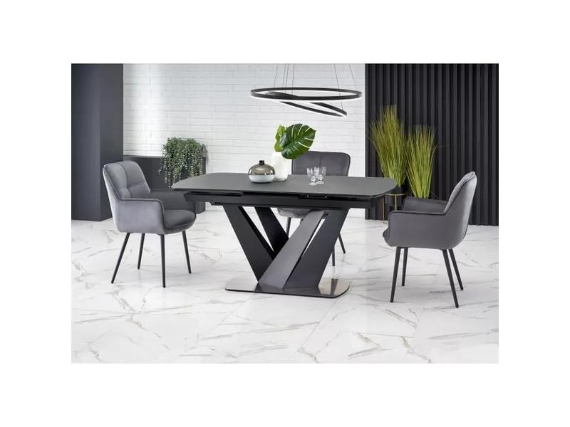 Table de salle à manger contemporaine extensible grise et noire avec pied central SHIELD