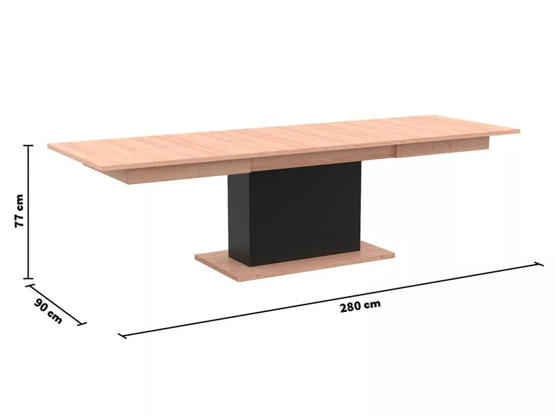Elle vous permet d’accueillir vos dîners entre amis ou vos repas de famille grâce à ses deux allonges centrales. Cette table extensible atteint 280 centimètres de longueur. Repliée, elle mesure 180 centimètres pour s’intégrer dans votre intérieur sans prendre tout l’espace. Son plateau rectangulaire est particulièrement pratique pour optimiser les espaces.
