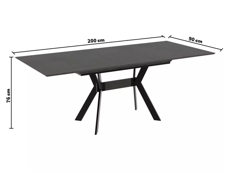Table de séjour rectangulaire avec allonge noir HARO – 90×160-200max. cm