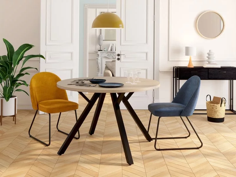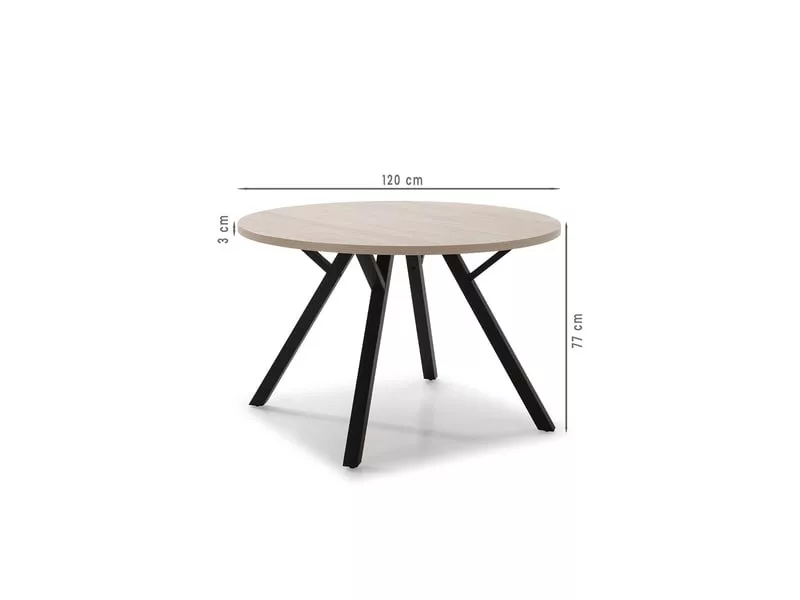 Avec la table ronde fixe 120 cm Glory dans son coloris chêne clair et noir, optimisez votre encombrement et découvrez un meuble élégant. Outre la plus simple décoration d’intérieur, elle servira à vos dîners en tête-à-tête ou comme petit bureau.