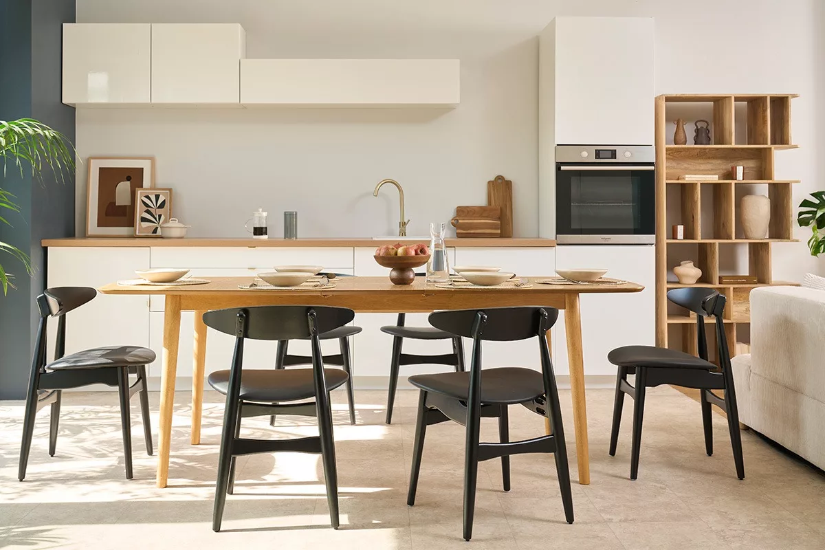 Lignes sobres, look minimaliste, veines apparentes et douce blondeur, cette table à manger rectangulaire à rallonge papillon en bois clair sait se faire apprécier par son caractère chaleureux et authentique. Pile dans la tendance déco nordique, voilà une table extensible scandinave qui se fondra avec aisance dans de nombreuses ambiances. Bohème, japandi, wabi-sabi, campagne ou chalet chic… Il n’y a pas de limites pour le mobilier intemporel et indémodable ! Une belle sobriété qui autorise toutes les associations.