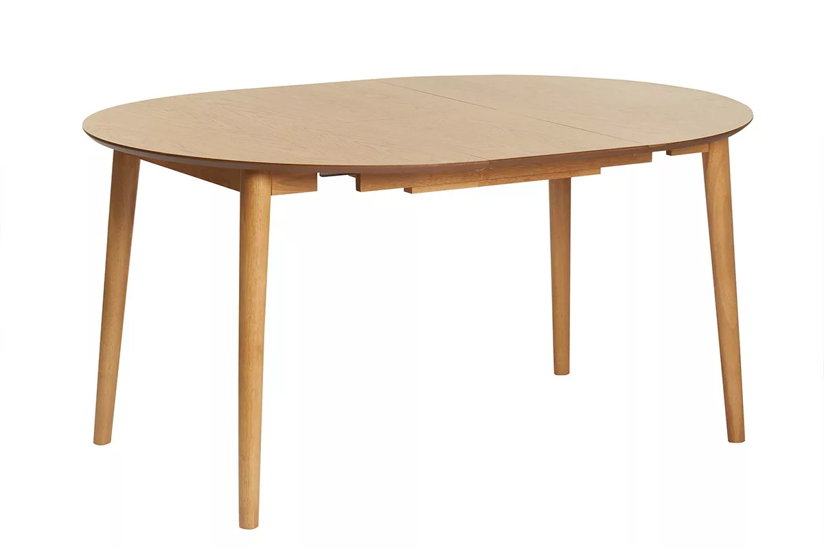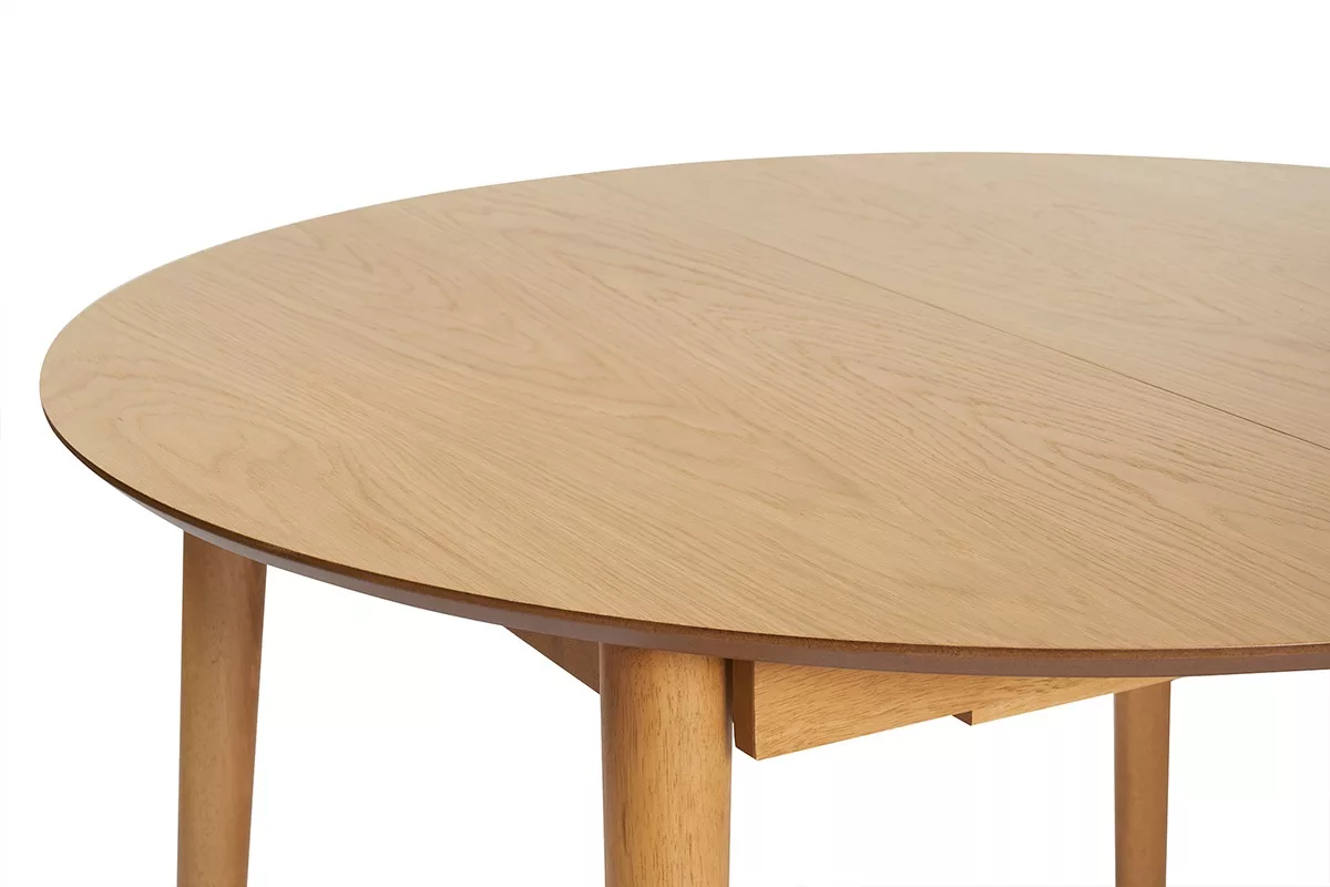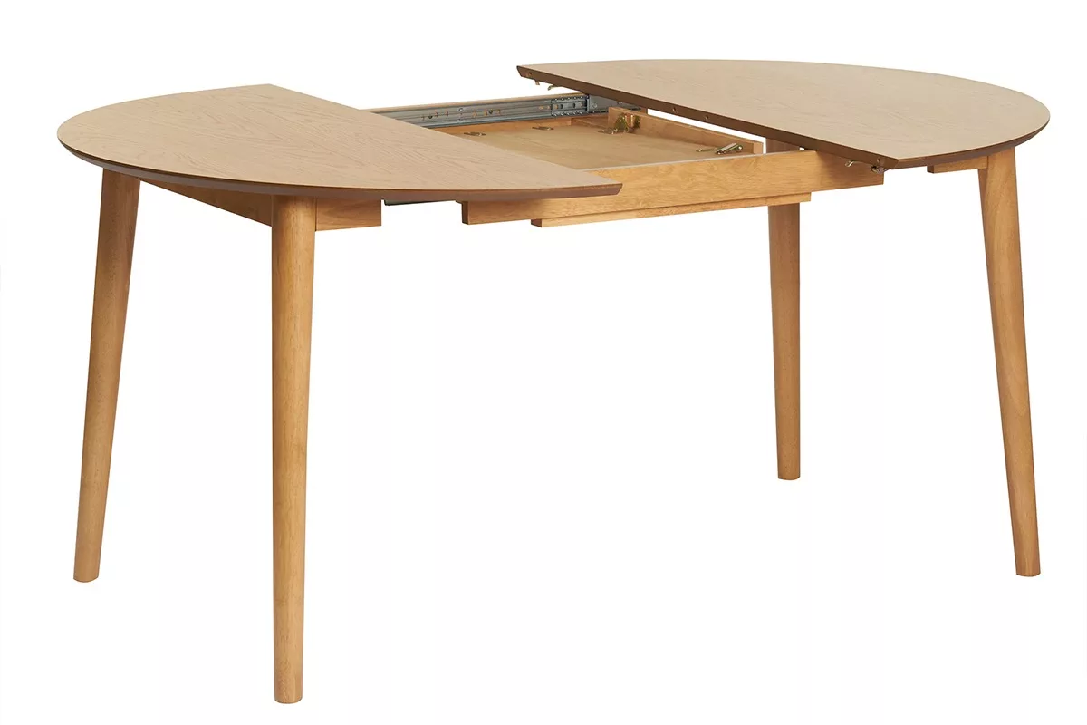 Table extensible rallonges intégrées ronde en bois clair chêne L115-154 cm EGO