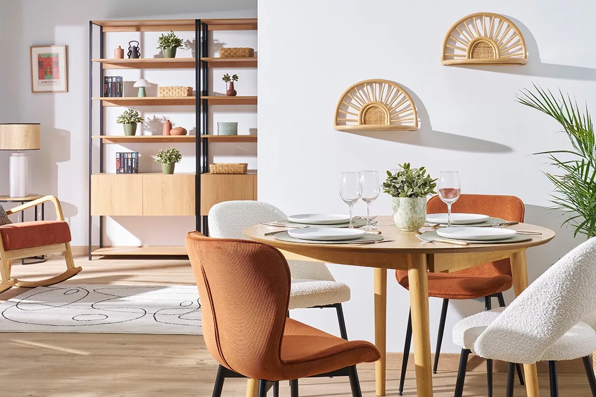 Ambiance chalet de montagne, maison de campagne ou tendance japandi, cette table à rallonge ronde 4-6 personnes s’apprête à faire le bonheur des intérieurs douillets et chaleureux… où il fait bon se retrouver ! Définissez l’ambiance souhaitée pour vos plans de table grâce à une grande suspension design justement positionnée pour mettre en valeur vos tablées.