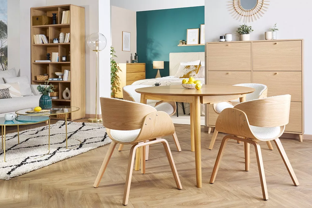 Simplicité des volumes, lignes toutes en rondeur et total look bois clair… Voilà une table à manger scandinave qui se fond avec sobriété dans de nombreux styles d’intérieurs. Intemporelle au charme nordique, cette table extensible ronde en bois clair 4-6 places s’intégrera avec aisance dans un décor de caractère.