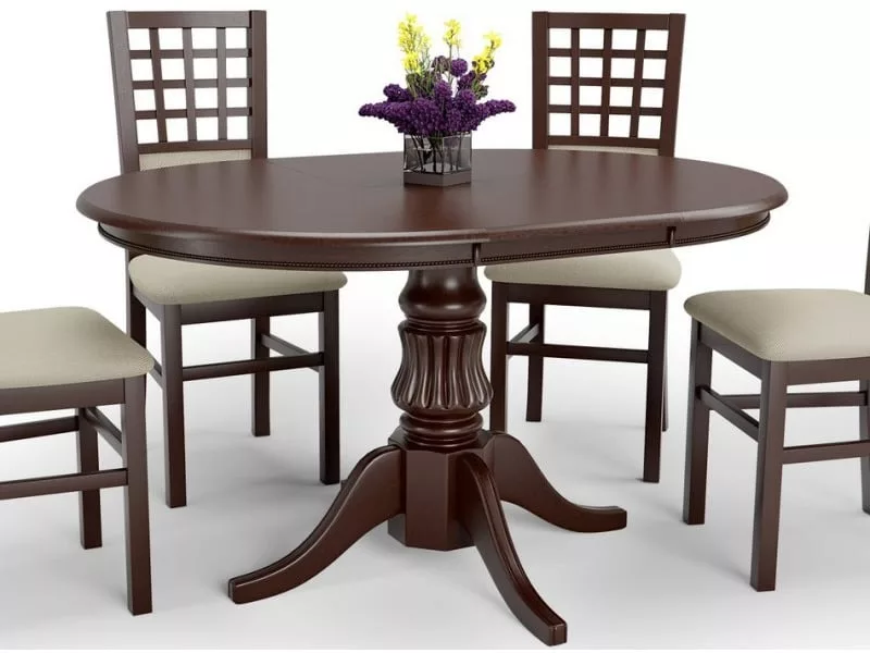 Table ronde extensible style noyer avec pied central walsor