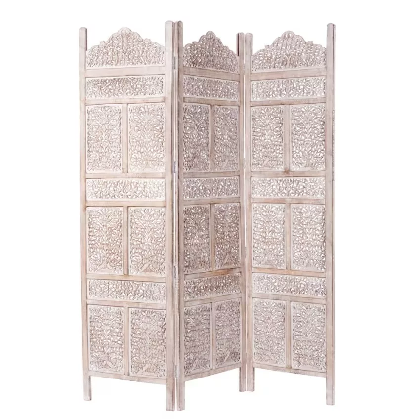 Paravent en bois blanchi massif. Chaque produit est unique.