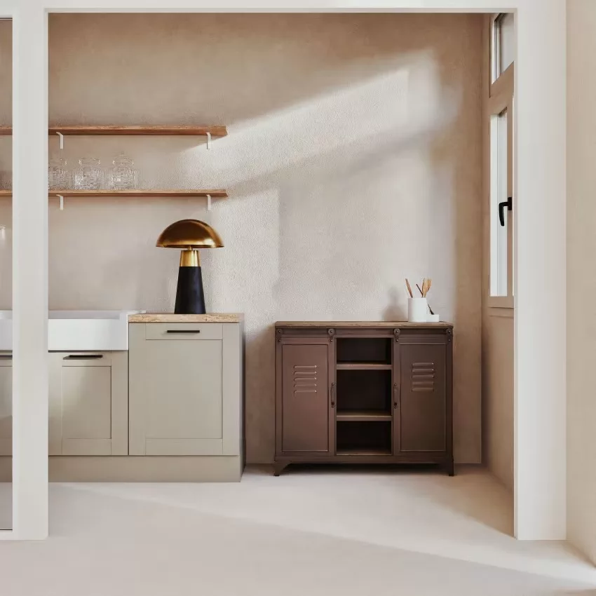 Buffet 2 portes en métal et sapin L100