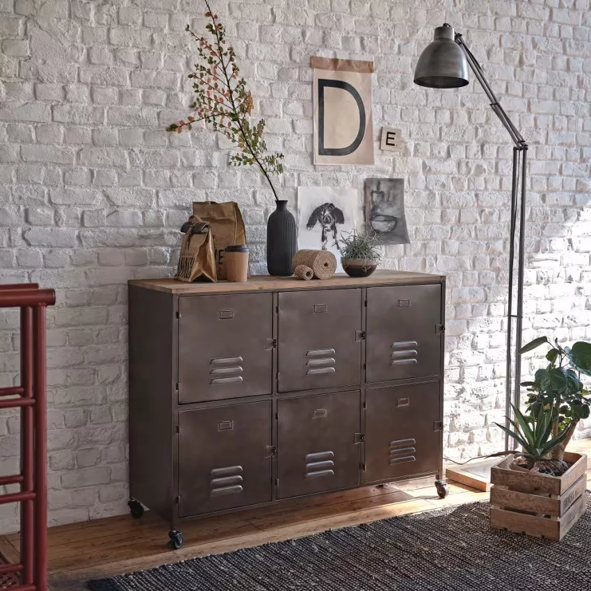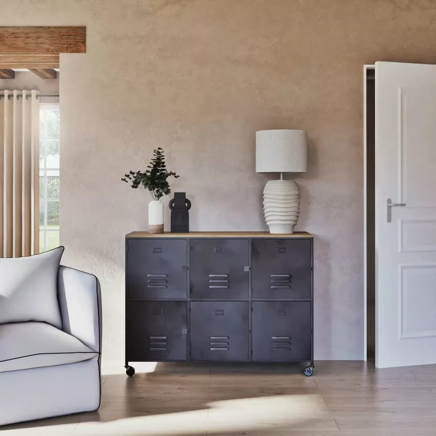 • Grâce à ses pieds sur roulettes, vous pourrez facilement déplacer ce buffet industriel à votre guise.