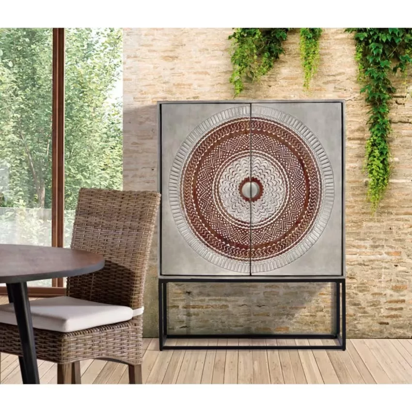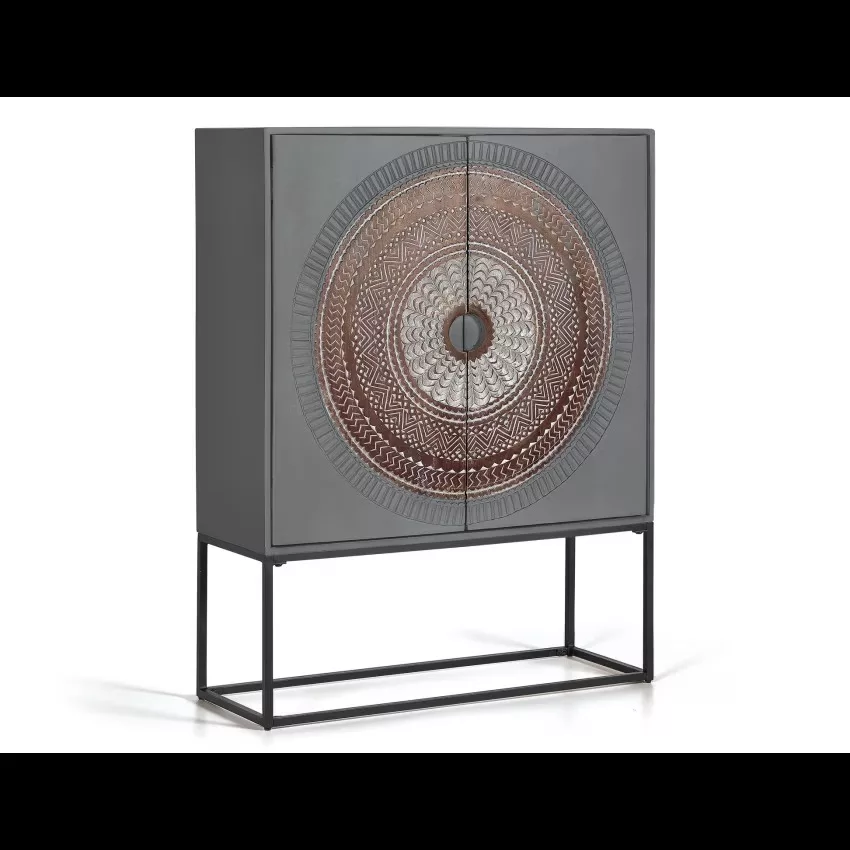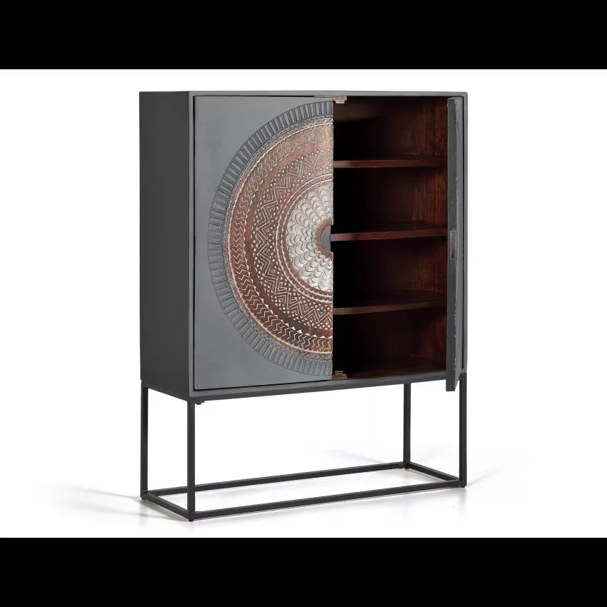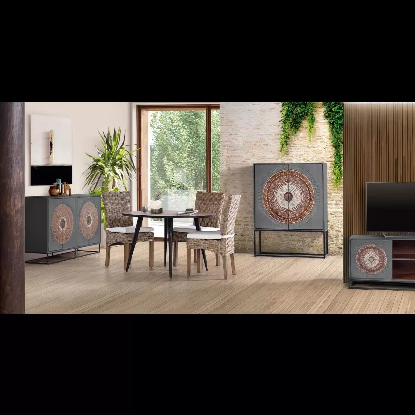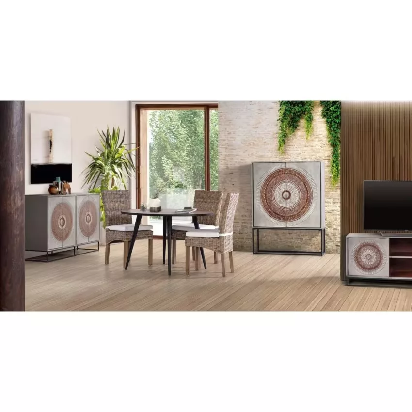 Wood mandala - Buffet en manguier pieds métal gris et marron